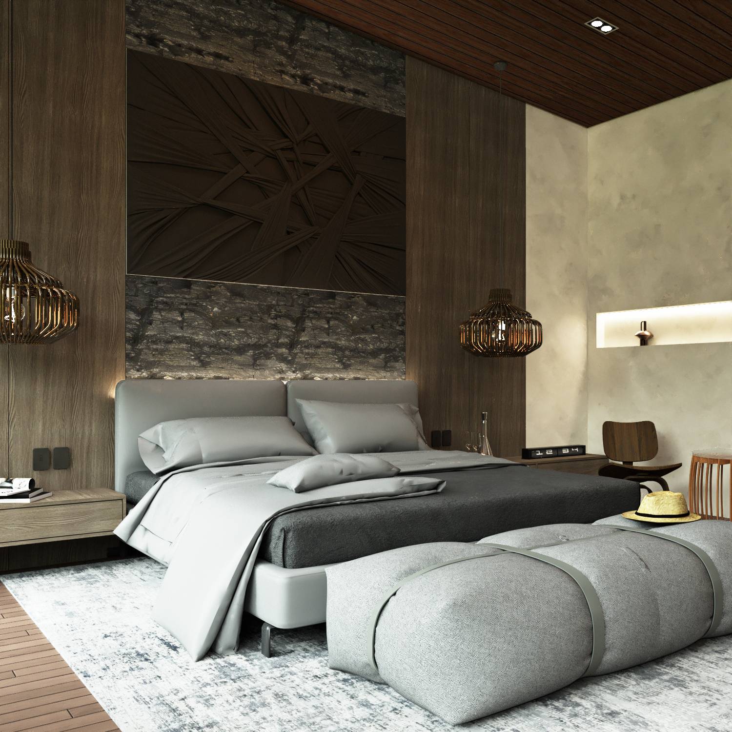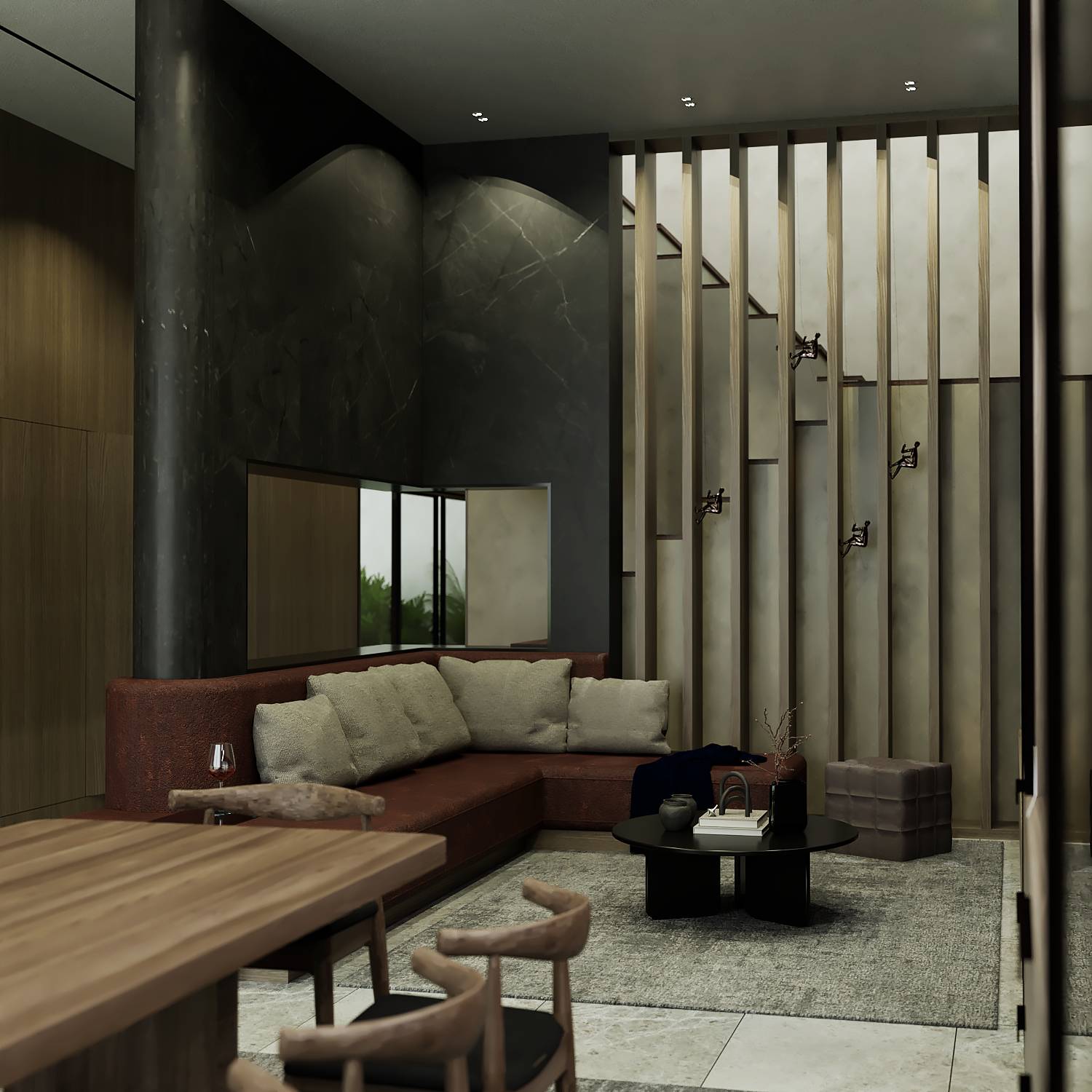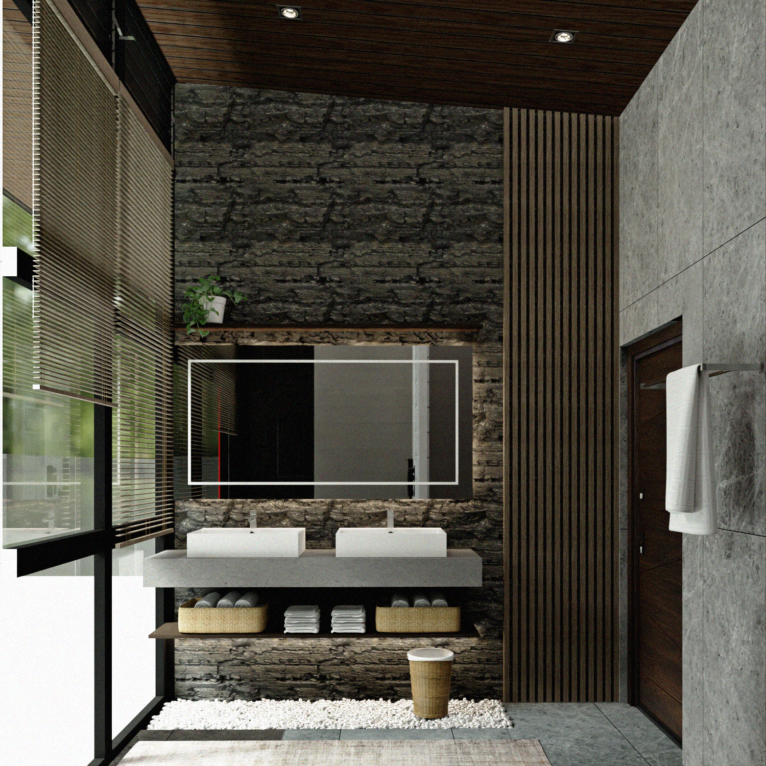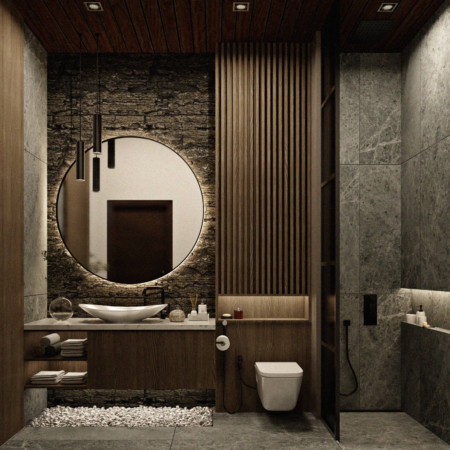 Wood, stone, and neutral tones enhance warmth and texture.