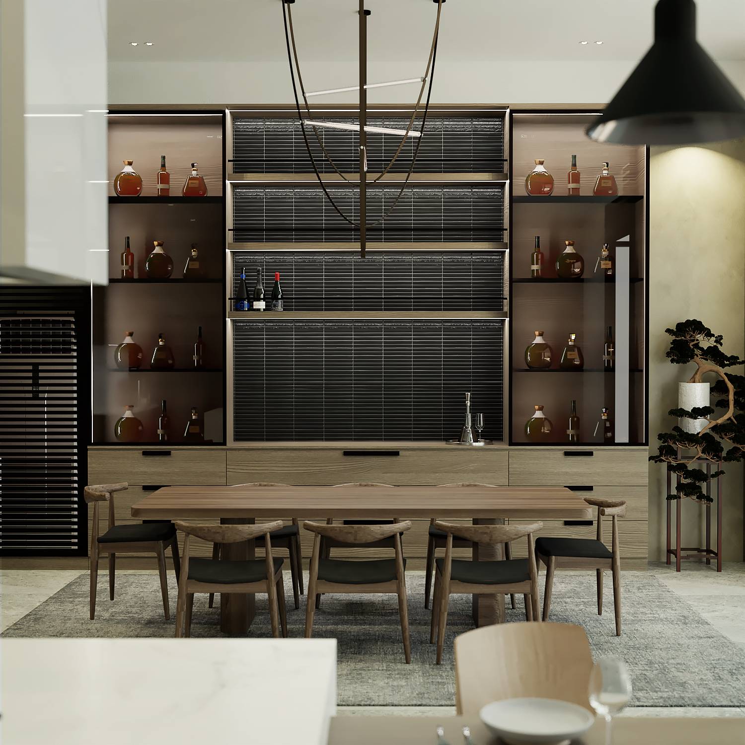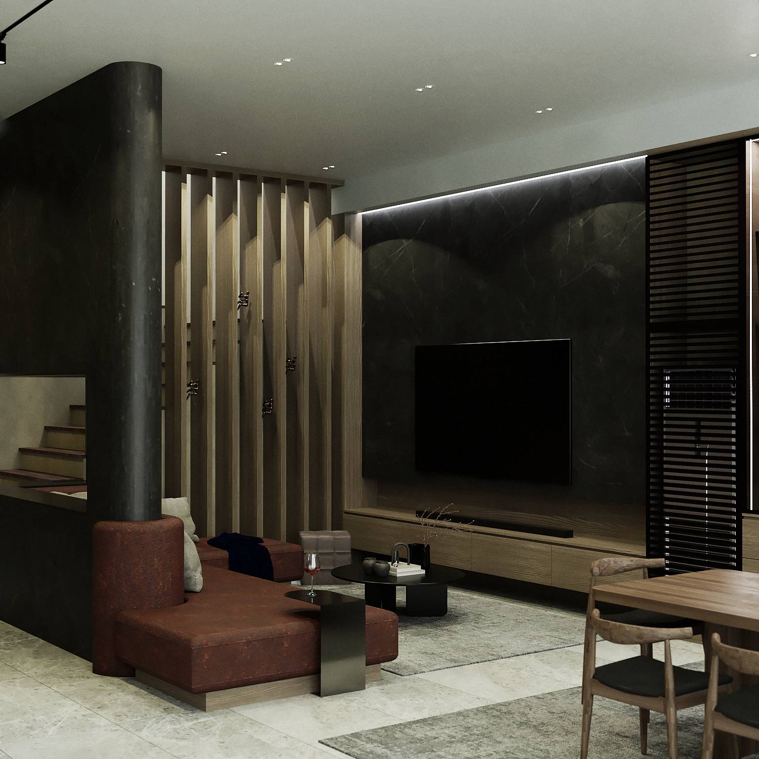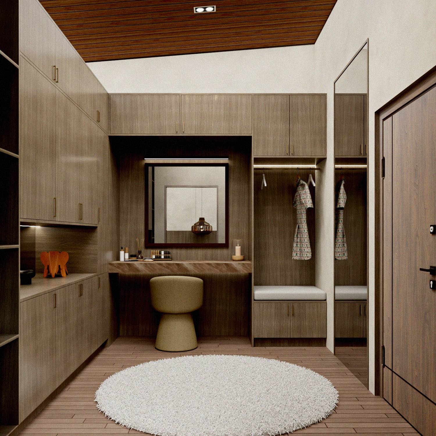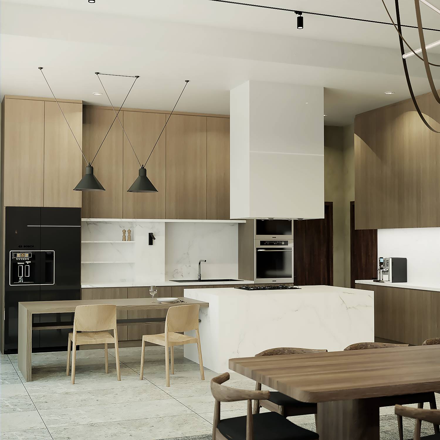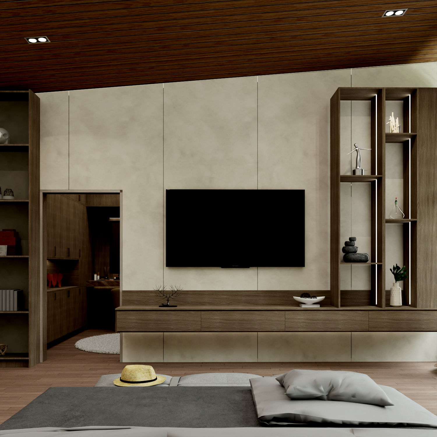Wood, stone, and neutral tones enhance warmth and texture.